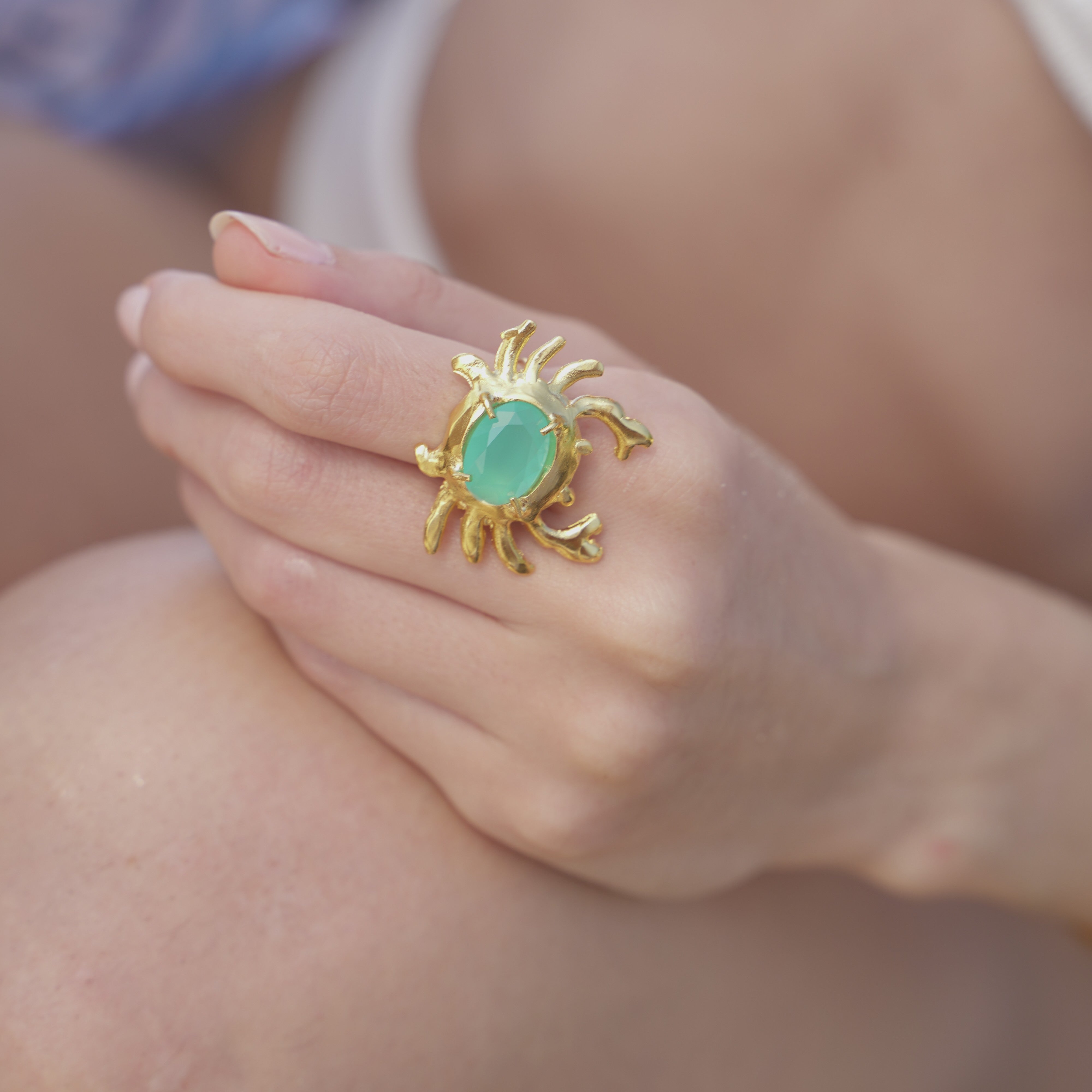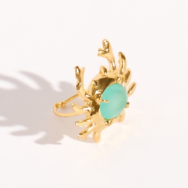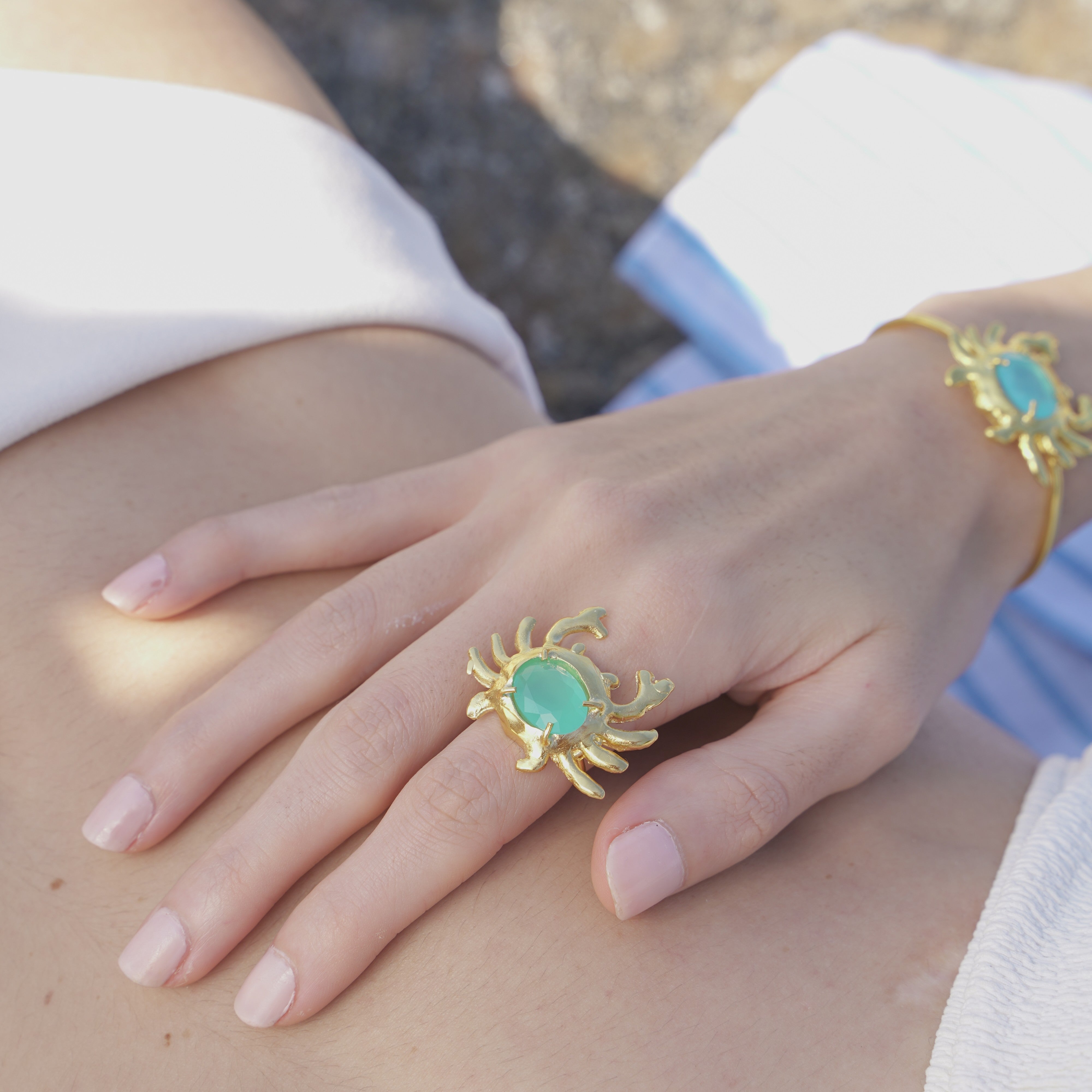 Com cravação de cristal turquesa feito no bronze e finalizado com banho de ouro 24k.