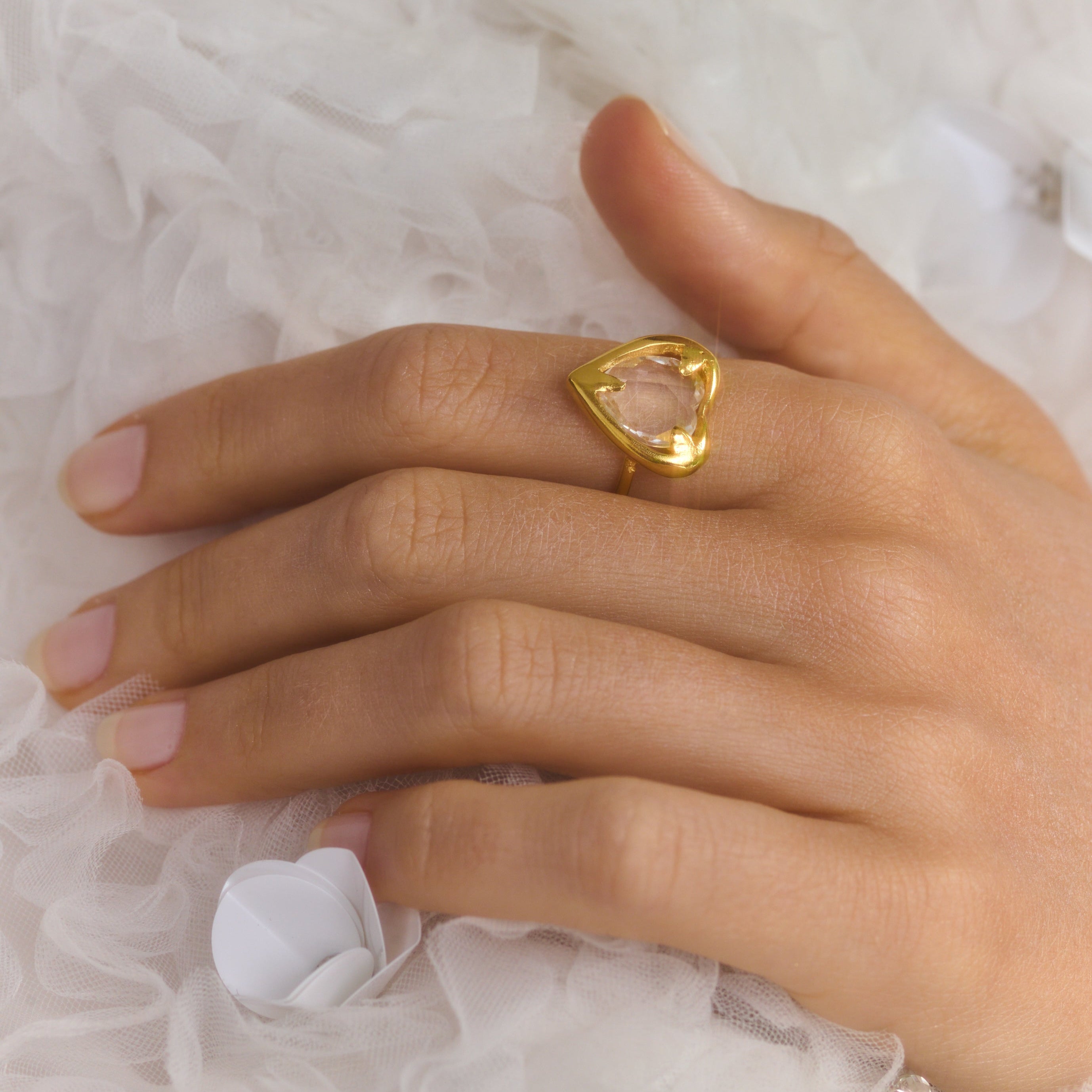 Anel Davos faz parte da coleção Fractal. Anel regulável feito com técnica de ourivesaria, cravado com cristal. Finalizado com banho de ouro 24k.