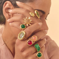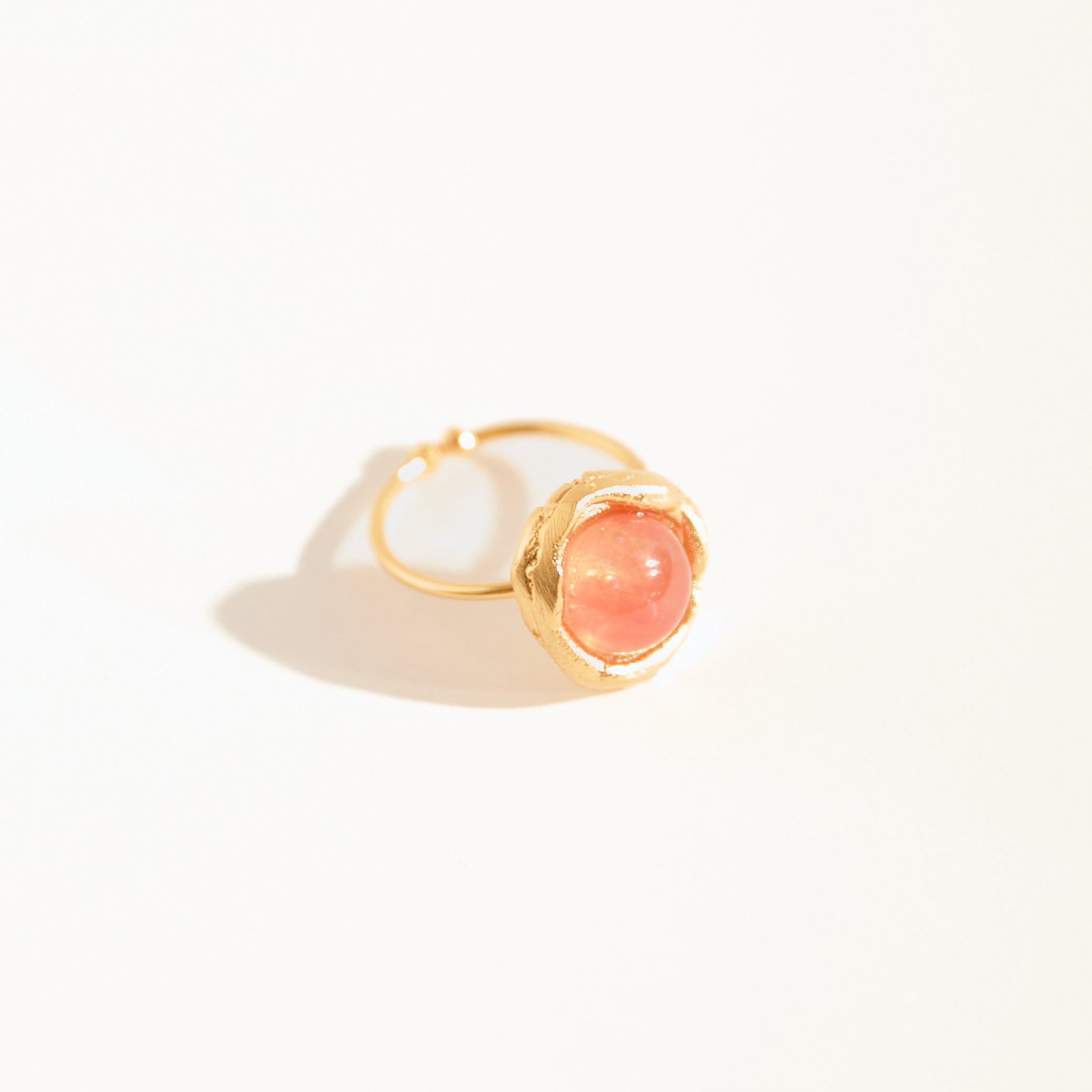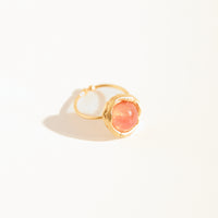 Anel Pipa Ágata Rosé faz parte da coleção Alto Verão Atol. Anel feito em bronze, com técnica de ourivesaria, cravado com ágata rosé. Finalizado com banho de ouro 24k.