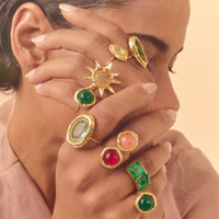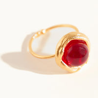 Anel Pipa Ágata Vermelha faz parte da coleção Alto Verão Atol. Anel feito em bronze, com técnica de ourivesaria, cravado com ágata vermelha. Finalizado com banho de ouro 24k.