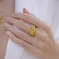 Feito em uma malha trançada de fios de bronze com aplicação de cristal rutilado e banho de ouro 24k.
