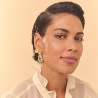 Brinco Espelho Rosé/Água Marinha faz parte da coleção Alto Verão Atol.