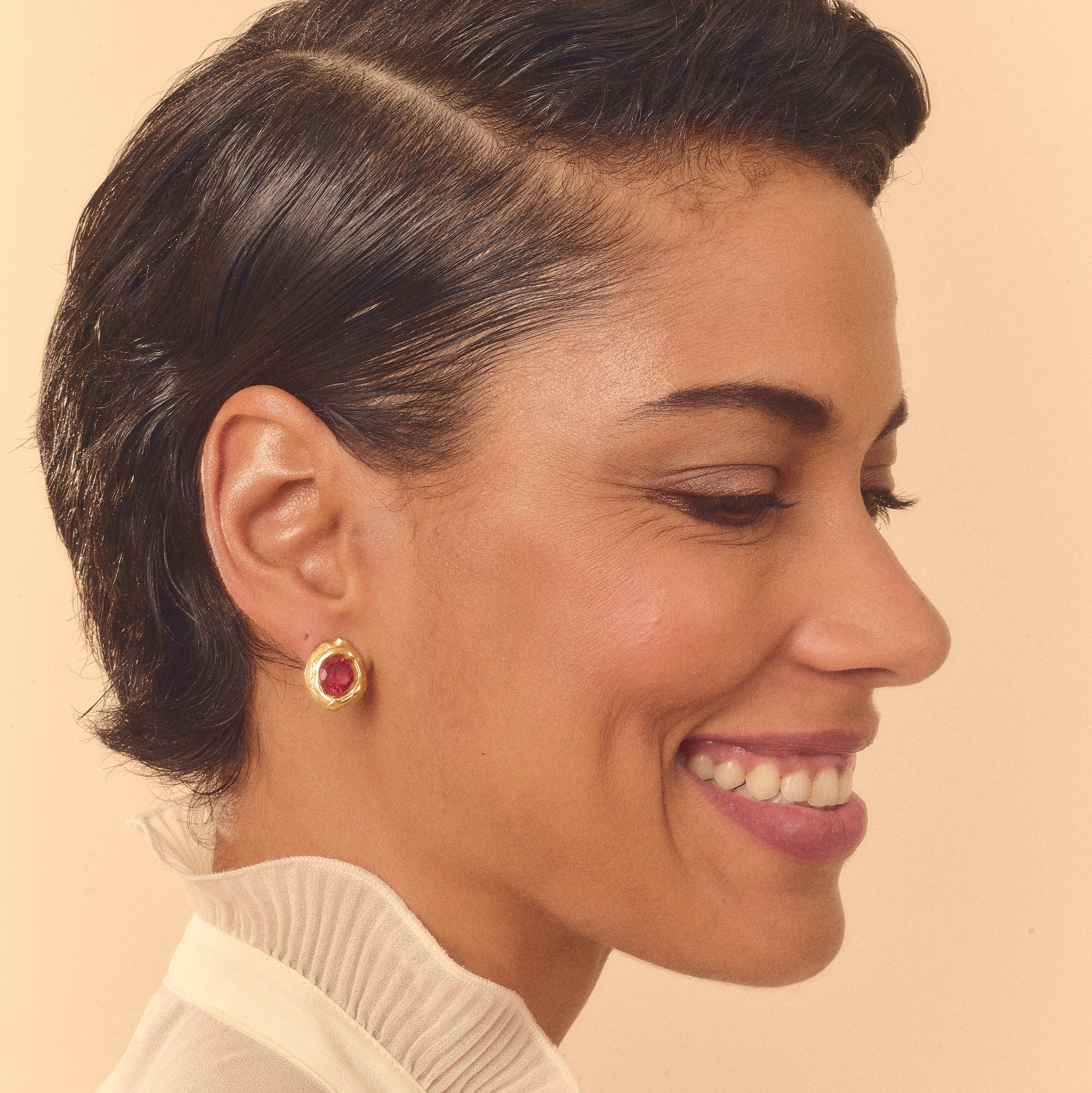 Brinco Pipa Cereja faz parte da coleção Alto Verão Atol. Brinco feito em bronze, com técnica de ourivesaria, cravado com pedra cereja. Finalizado com banho de ouro 24k.Tamanho: 1,5cmPeso: 2,6g.