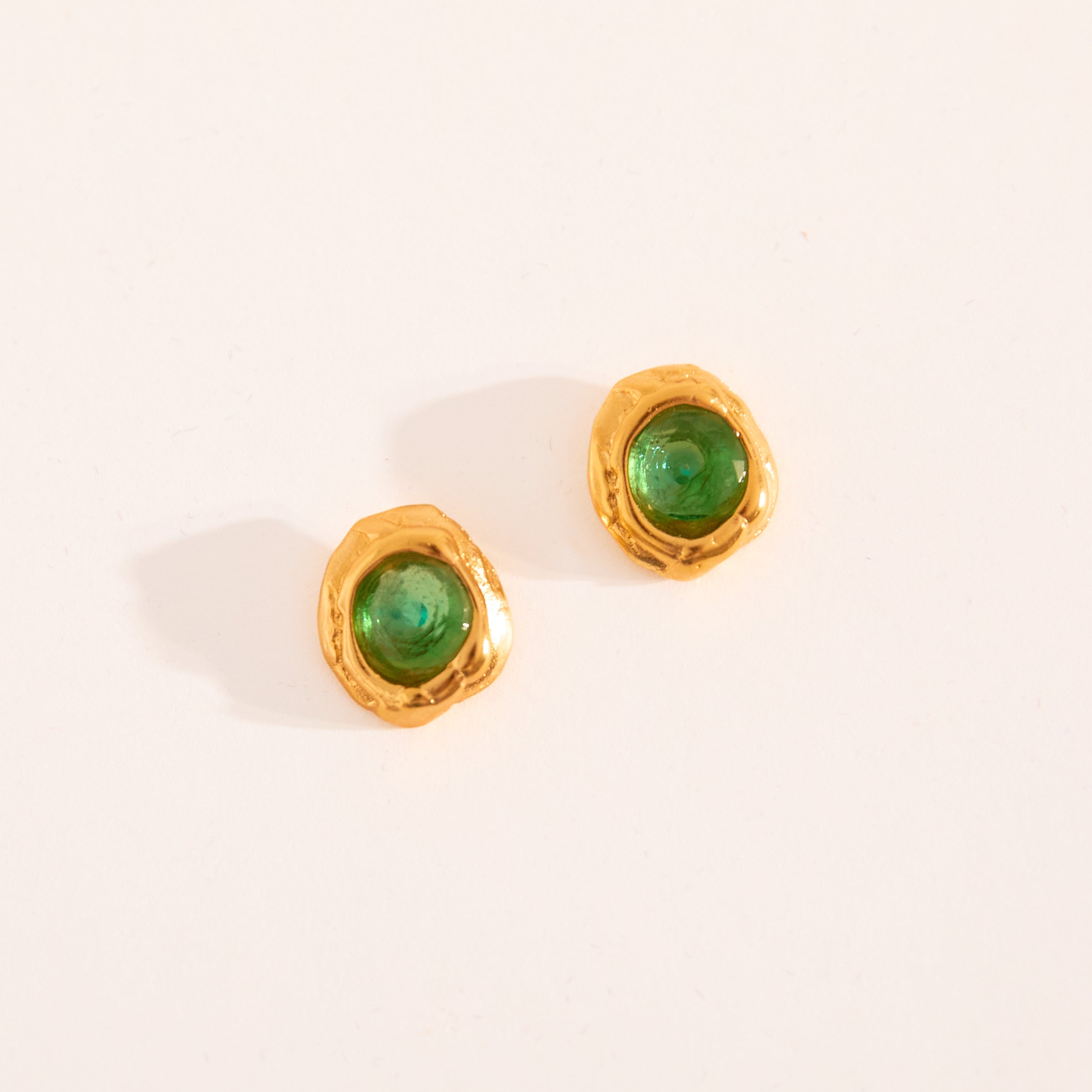 Brinco Pipa Jade faz parte da coleção Alto Verão Atol. Brinco feito em bronze, com técnica de ourivesaria, cravado com pedra verde. Finalizado com banho de ouro 24k.Tamanho: 1,5cmPeso: 2,6g.