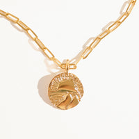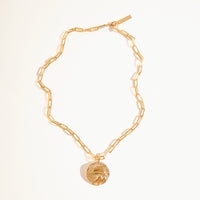 Colar de corrente, com pingente feito em bronze com técnica de ourivesaria. Finalizado com banho de ouro 24k.  Sistema de fecho abre/fecha.