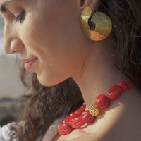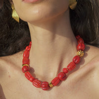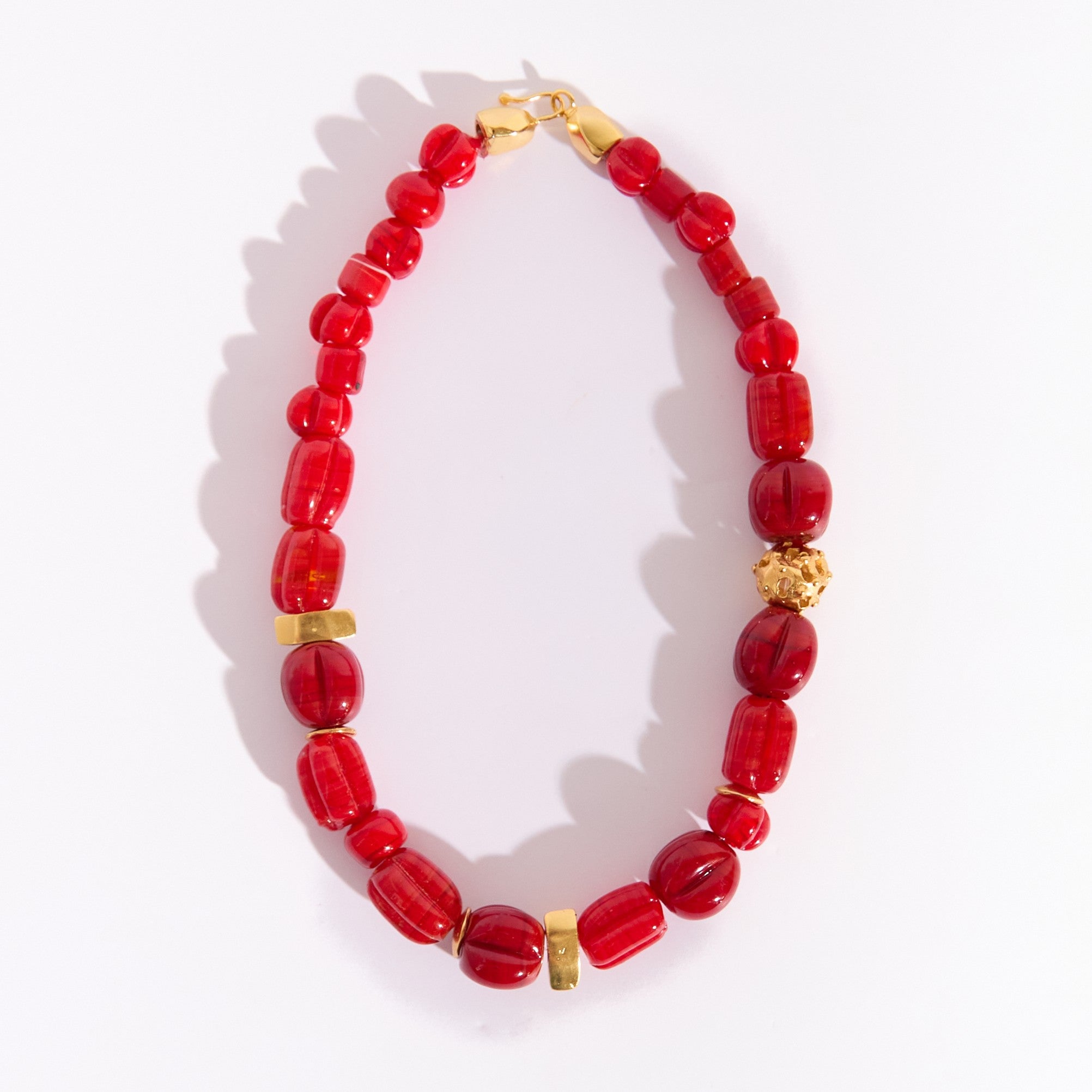 Colar em vidro Murano com peças e fecho em bronze com banho de ouro 24k.