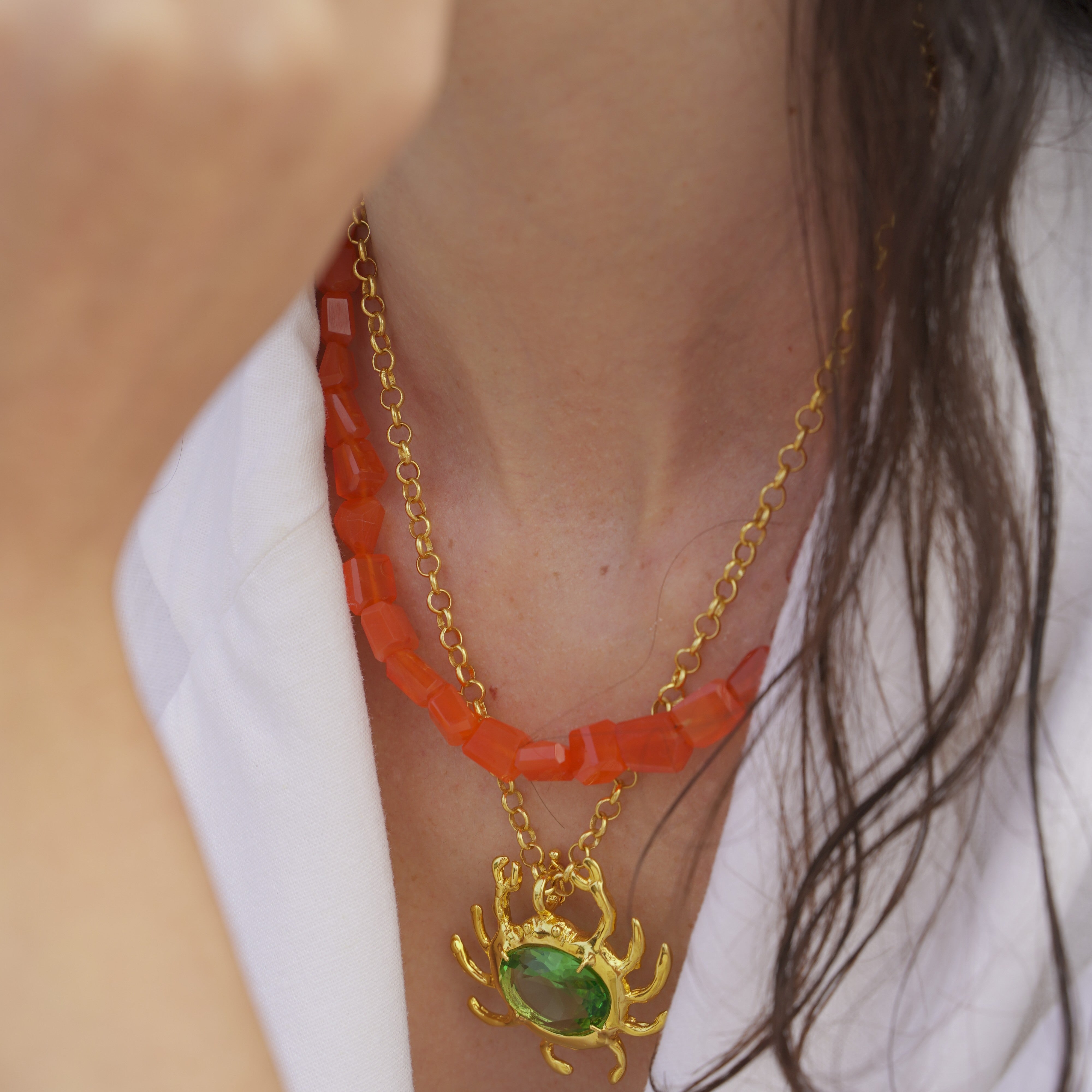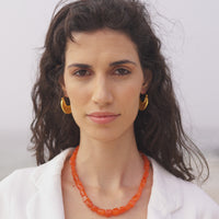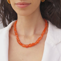 Colar feito com pedras naturais de cornalina lapidadas uma a uma artezanalmente e fecho feito em bronze, com técnica de ourivesaria, finalizado com banho de ouro 24k.
