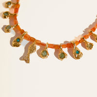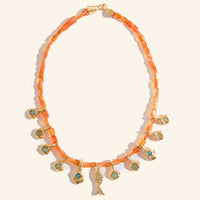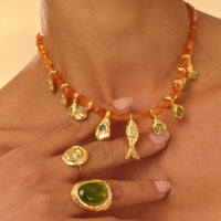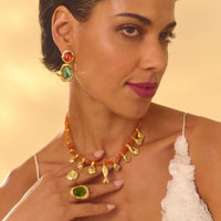 Colar Ipanema faz parte da coleção Alto Verão Atol. Colar feito com pedras naturais e pingentes cravado com cristais. Fecho feito em bronze, com técnica de ourivesaria. Finalizado com banho de ouro 24k. Comprimento: cm.