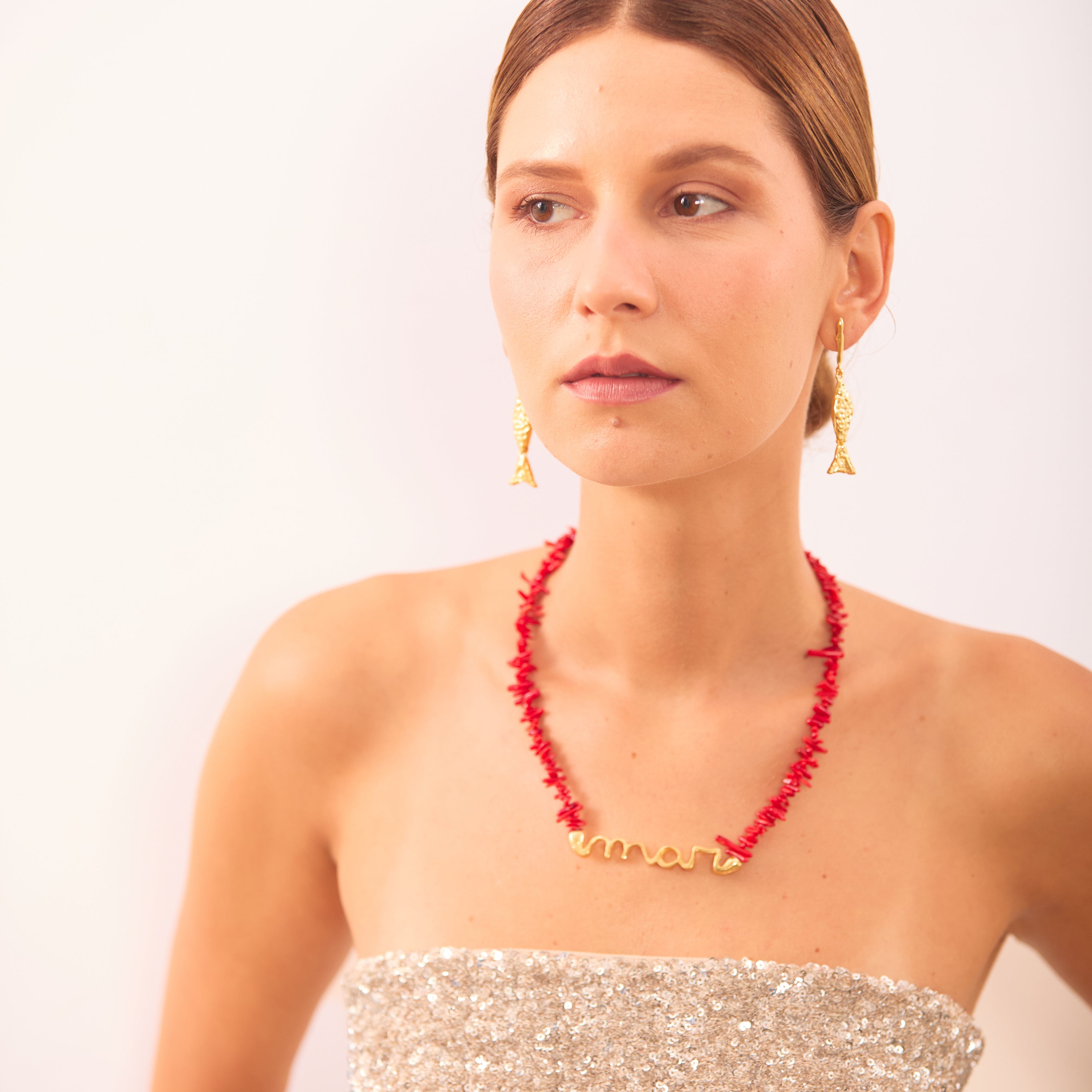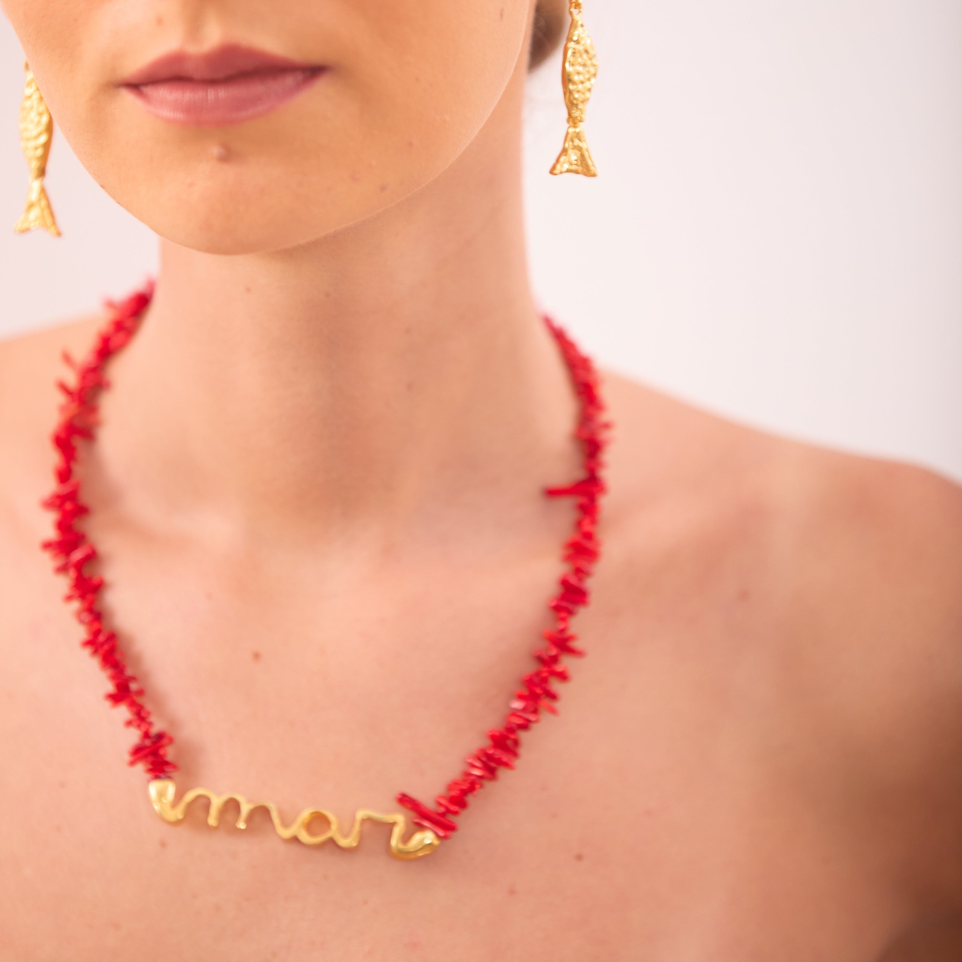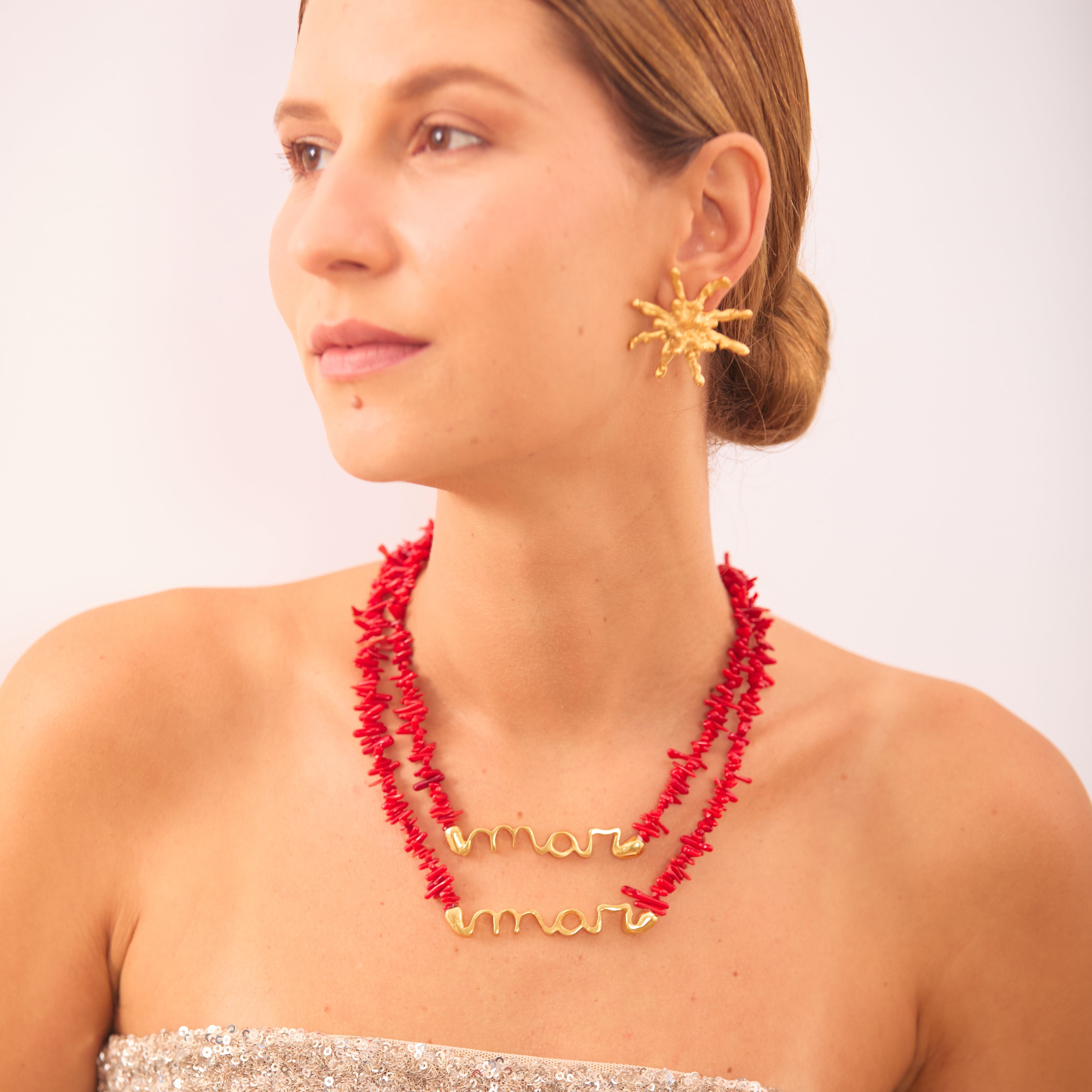 Colar Mar Corais faz parte da coleção Atol. Colar de metal na fundição em latão e acabamento em ouro 24k com corais naturais irregulares.Tamanho: 40cm