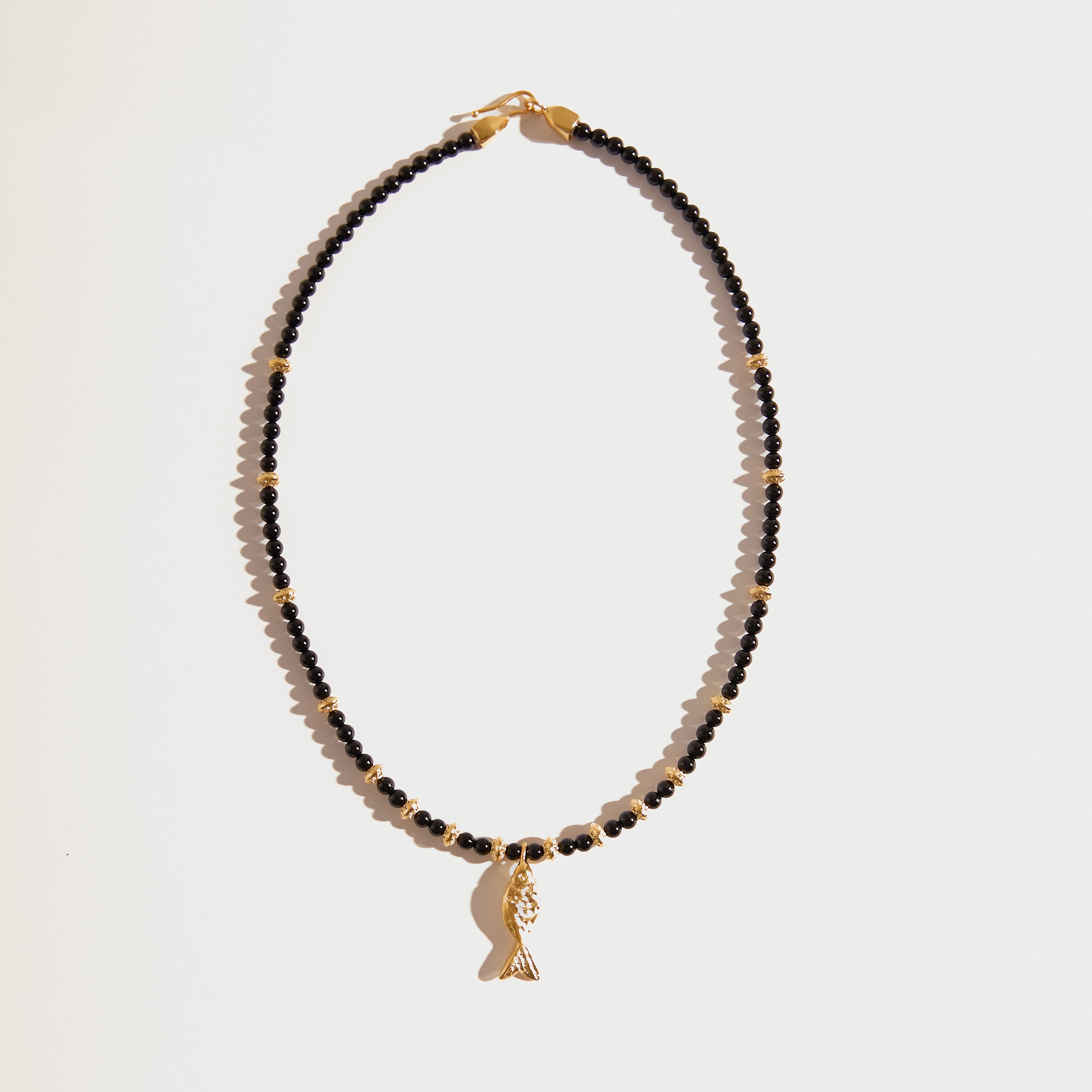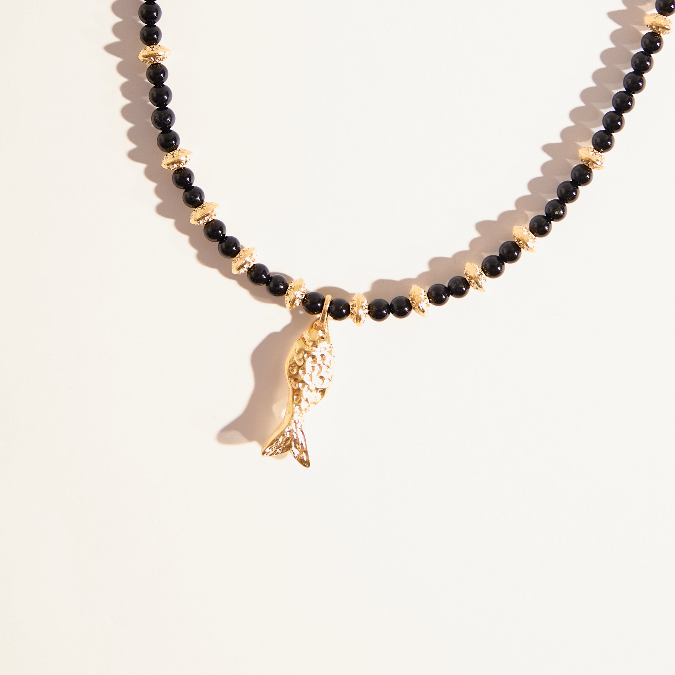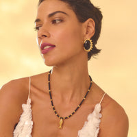 Colar feito com ágatas naturais pretas e com pingentes feito em técnica de ourivesaria. Finalizado com banho de ouro 24k.