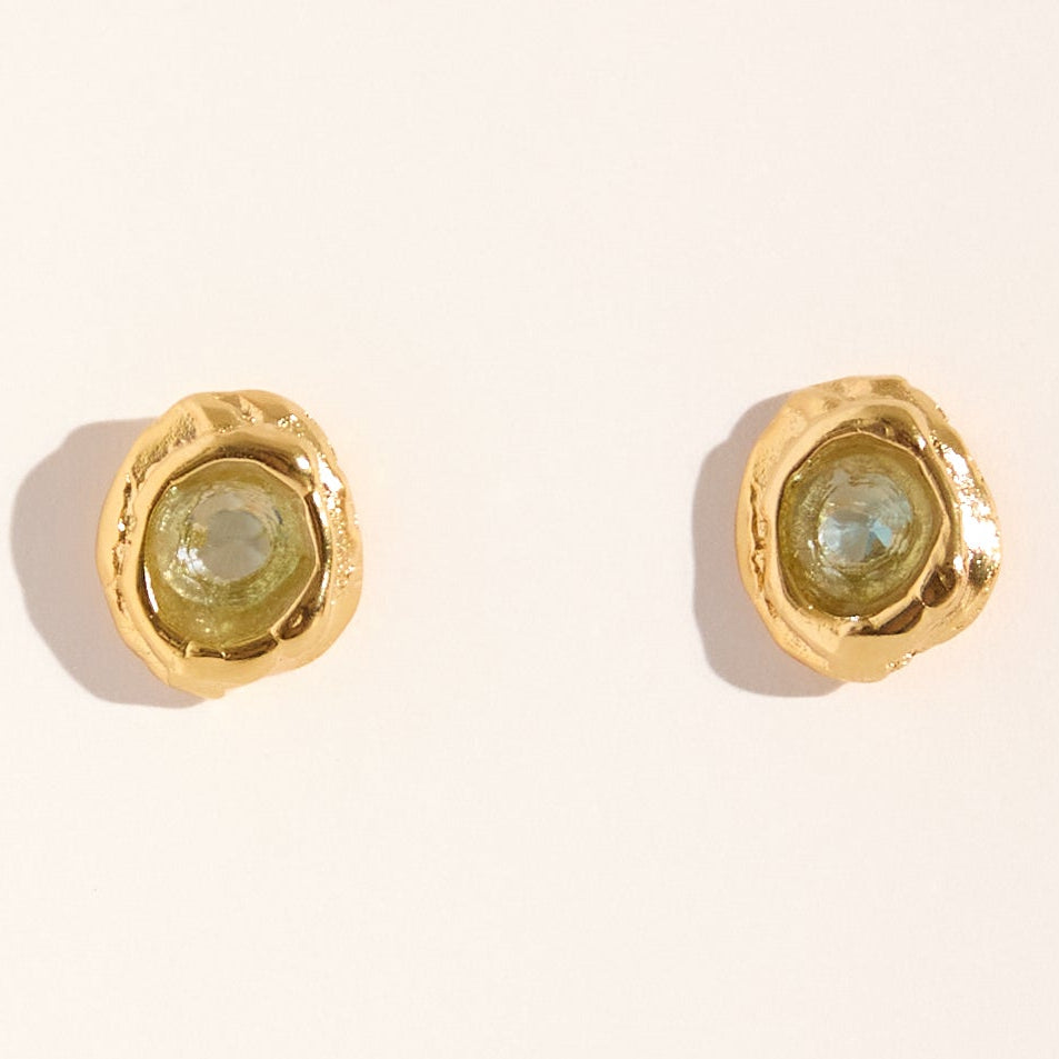 Brinco Pipa Água Marinha faz parte da coleção Alto Verão Atol. Brinco feito em bronze, com técnica de ourivesaria, cravado com pedra água marinha. Finalizado com banho de ouro 24k.Tamanho: 1,5cmPeso: 2,6g.