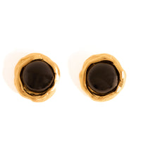 Brinco Pipa Preto faz parte da coleção Alto Verão Atol. Brinco feito em bronze, com técnica de ourivesaria, cravado com pedra preta. Finalizado com banho de ouro 24k.Peso: 2,6g.
