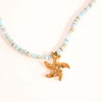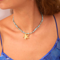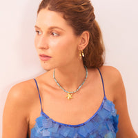 Colar Brisa faz parte da coleção Atol.Colar feito com pedras naturais, pingente feito em técnica de ourivesaria e finalizado com banho de ouro 24k. Fecho feito a mão na pesca em metal, finalizado com banho de ouro 24k. Tamanho: 40cm