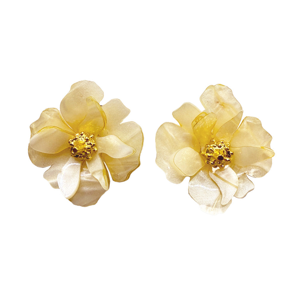 Brinco em acrílico moldado à mão, com metal com acabamento em ouro 24 K. Peso 8 gramas