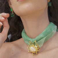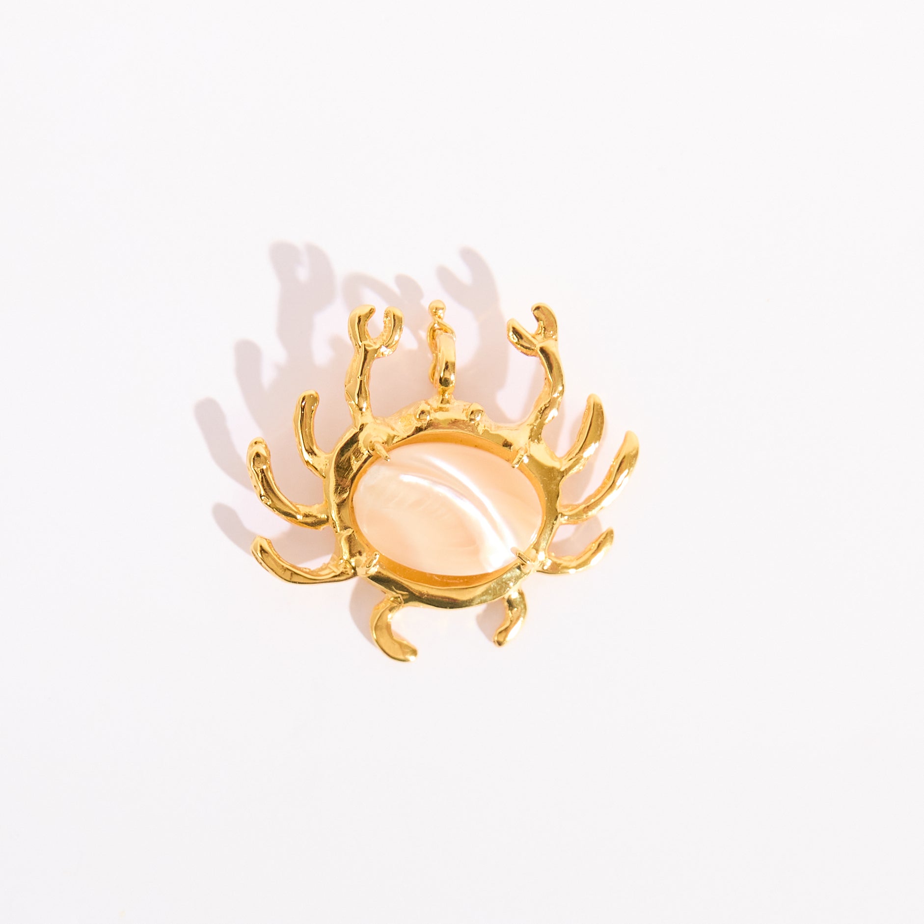 Pingente King Crab Madrepérola natural faz parte da coleção Atol. Pingente feito em bronze com técnica de ourivesaria, cravado com madrepérola. Finalizado com banho de ouro 24k.