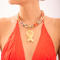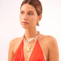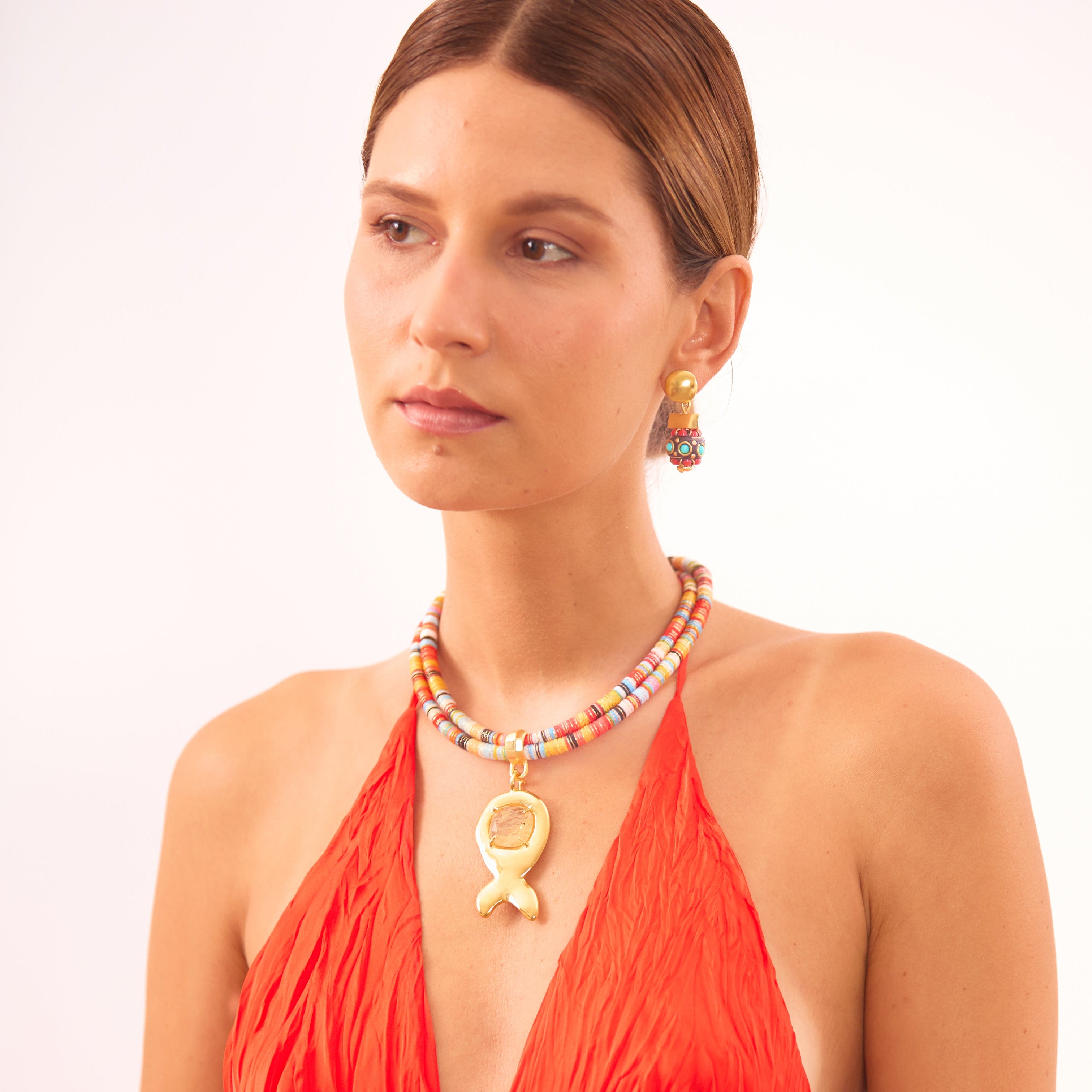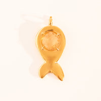 Pingente Manjuba Rutilado faz parte da coleção Alto Verão Atol. Pingente feito com técnica de ourivesaria, cravado com cristal rutilado. Finalizado com banho de ouro 24k. Não acompanha colar.