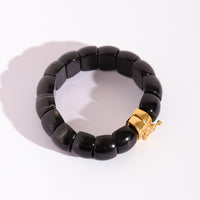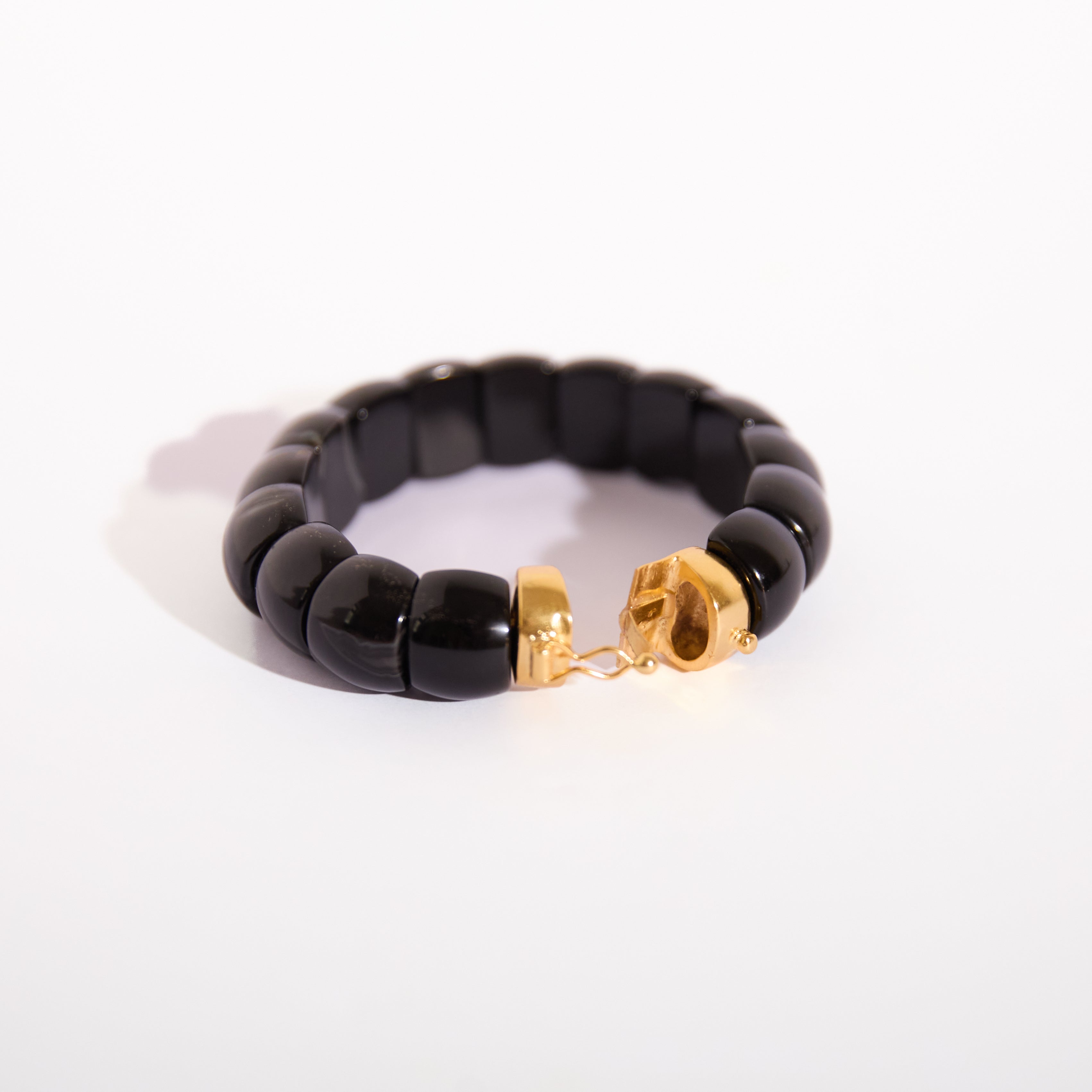 Feito com pedras onix naturais e lapidadas manualmente e fecho em bronze na ourivesaria.