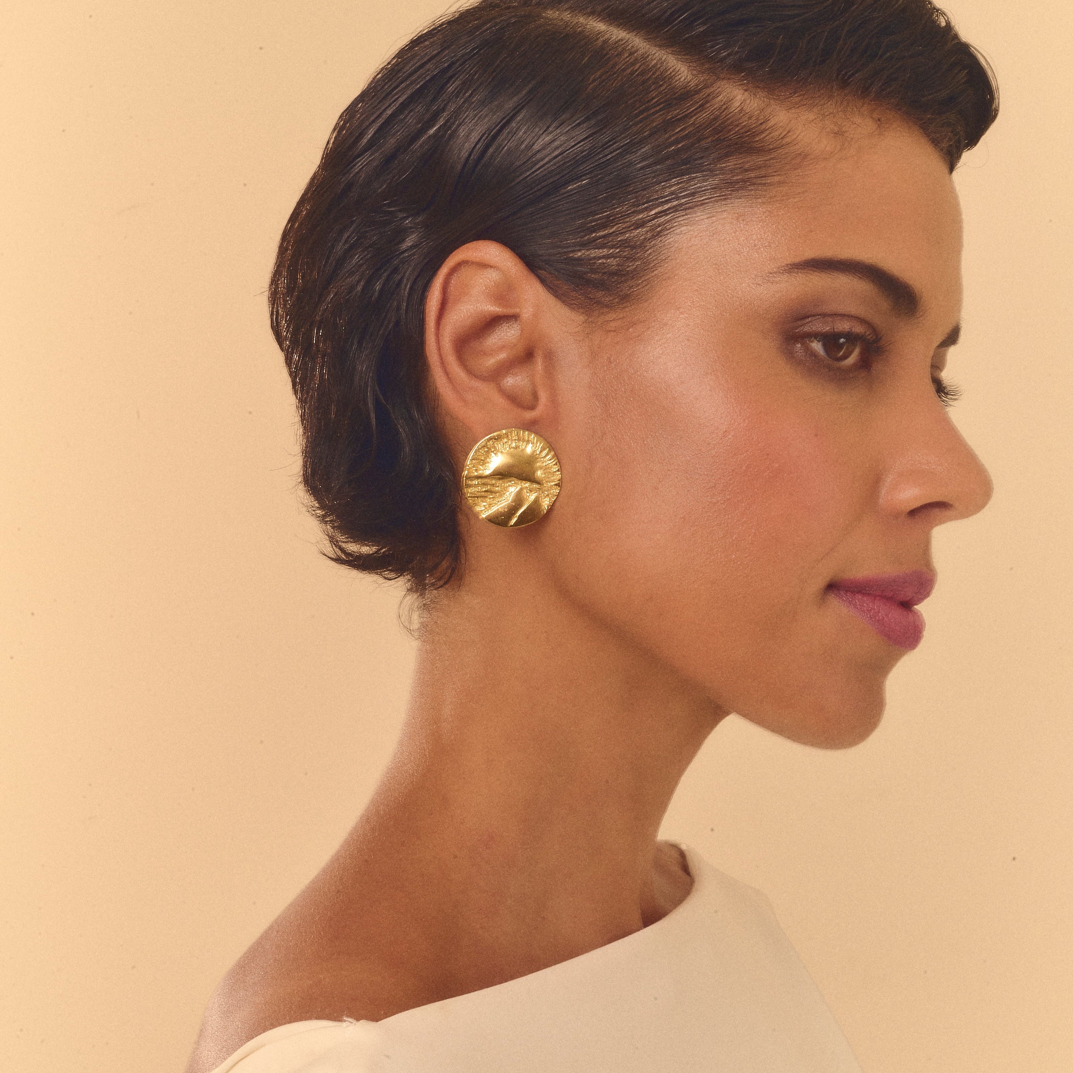 Brinco Arp faz parte da coleção Alto Verão Atol. Brinco feito em bronze com técnica de ourivesaria e finalizado com banho de ouro 24k. Tamanho: 3cm (circunferência)Peso: 4,5g.