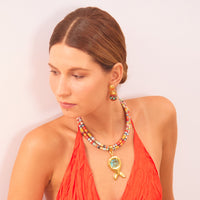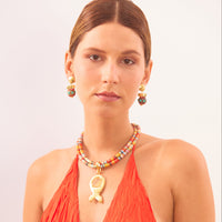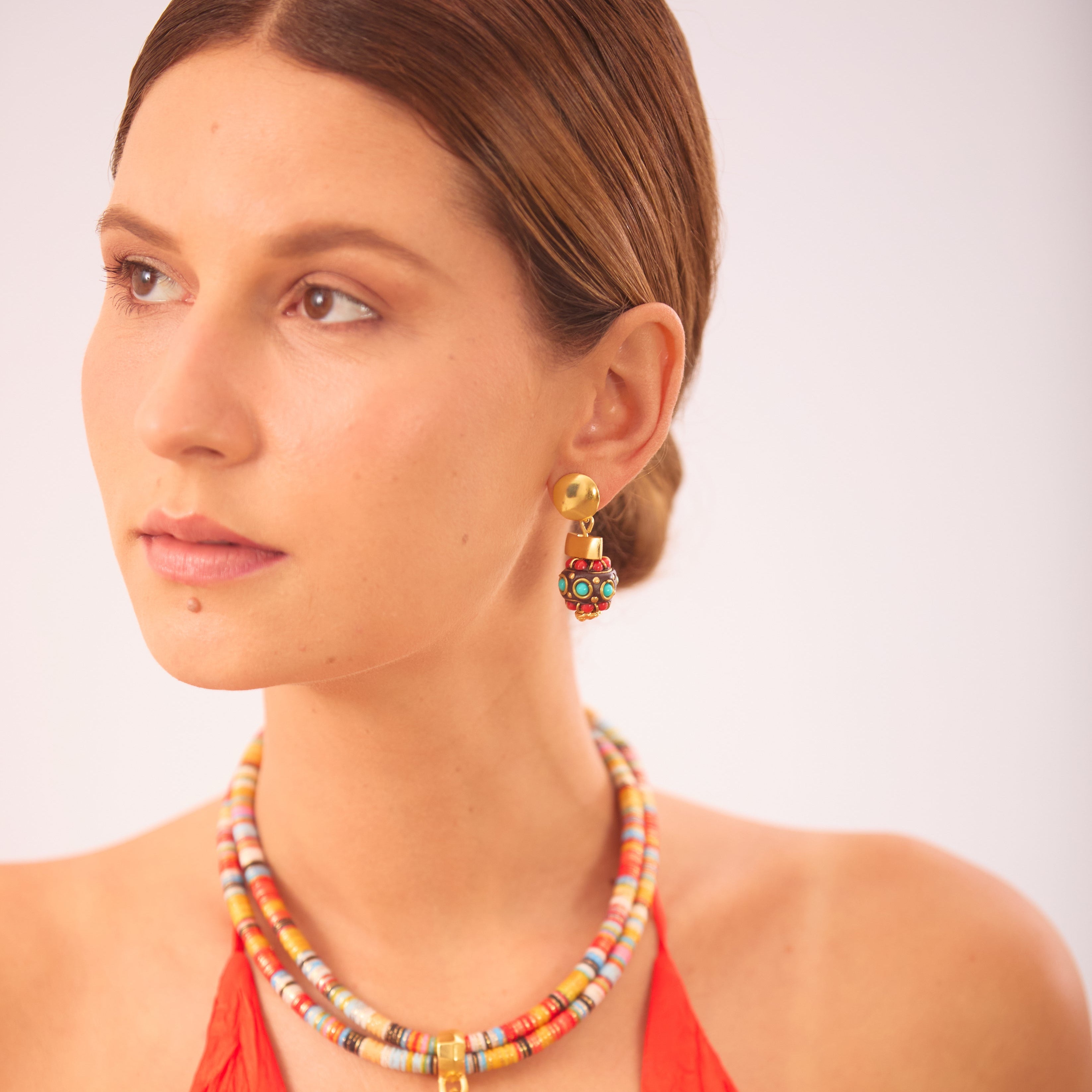 Brinco Carmel faz parte da coleção Atol Brinco feito com bola com aplicações orgânicas. Finalizada com banho de ouro 24k. Por serem aplicações orgânicas, podem sofrer leve alteração de cor, mas seguem as mesmas proporções da imagem. Peso: 11g