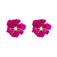 Brinco Flor em acrílico moldado à mão com Perola barroca natural e banho de ouro 24K