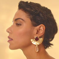 Brinco Trancoso faz parte da coleção Alto Verão Atol. Brinco feito em bronze com técnica de ourivesaria, cravado com cristais. Finalizado com banho de ouro 24k. Peso: 14g