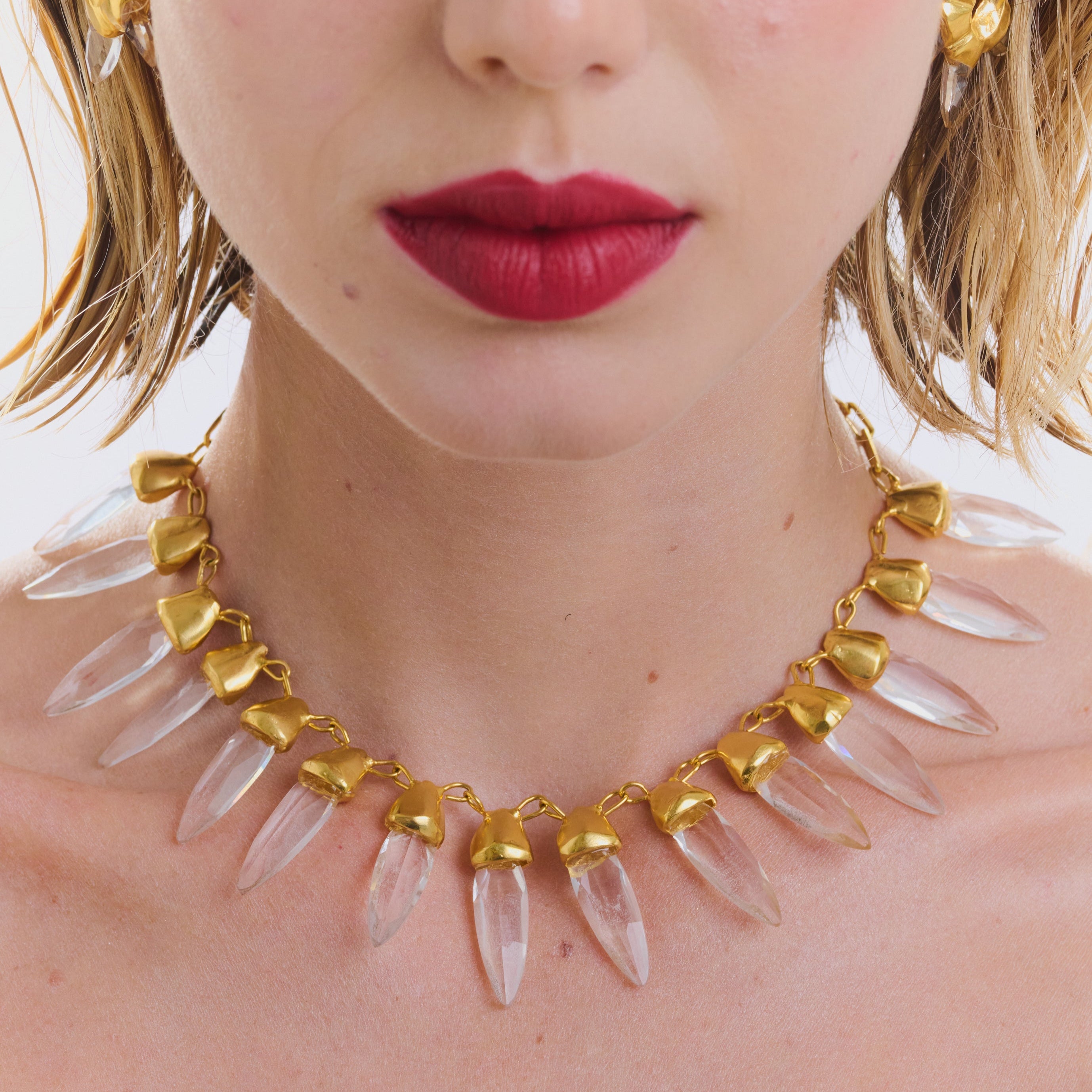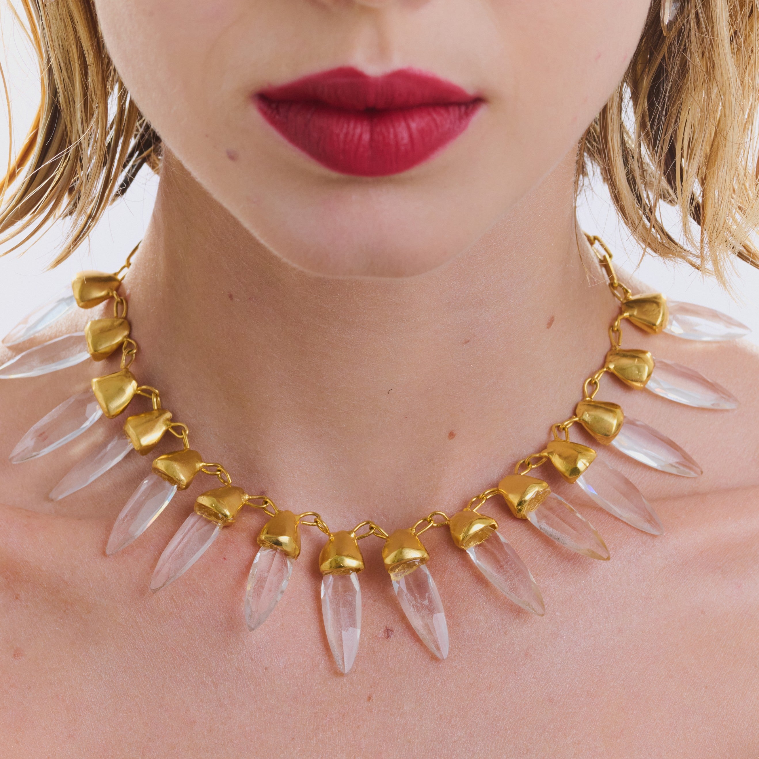 Colar Ice Cristal Big faz parte da coleção Fractal. Colar de corrente, cravado com gotas de cristais big. Finalizado com banho de ouro 24k. Comprimento: 40cm.