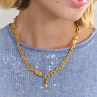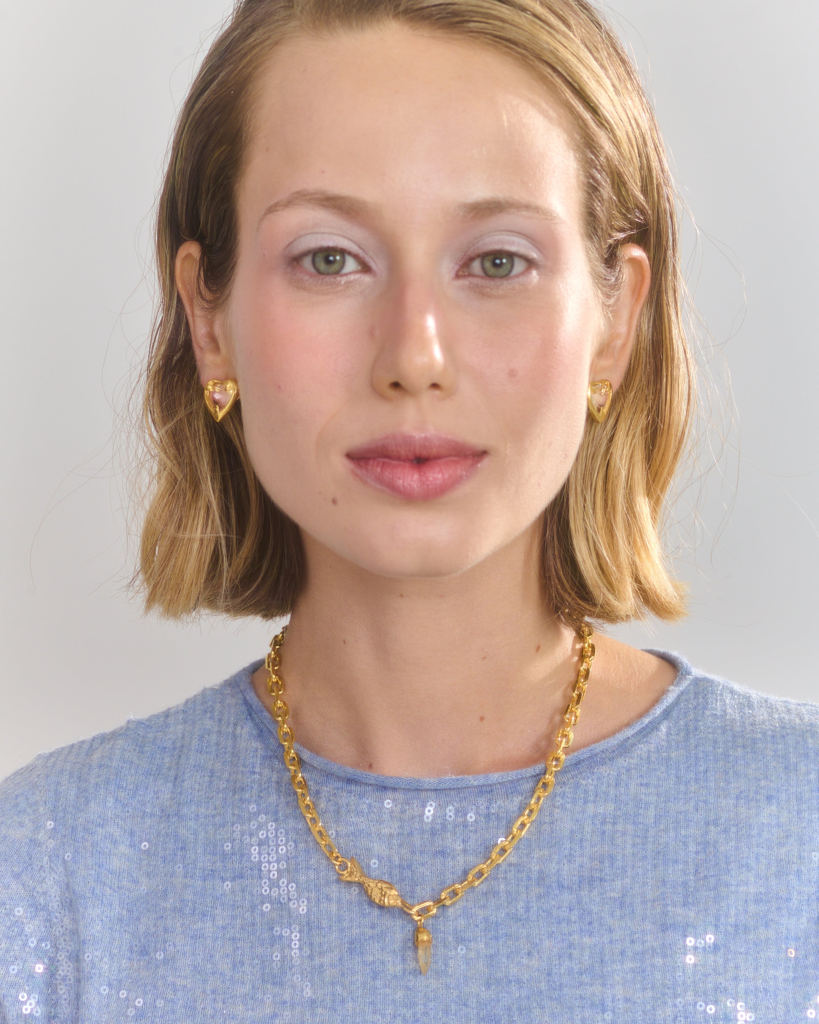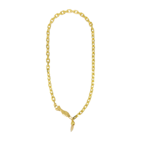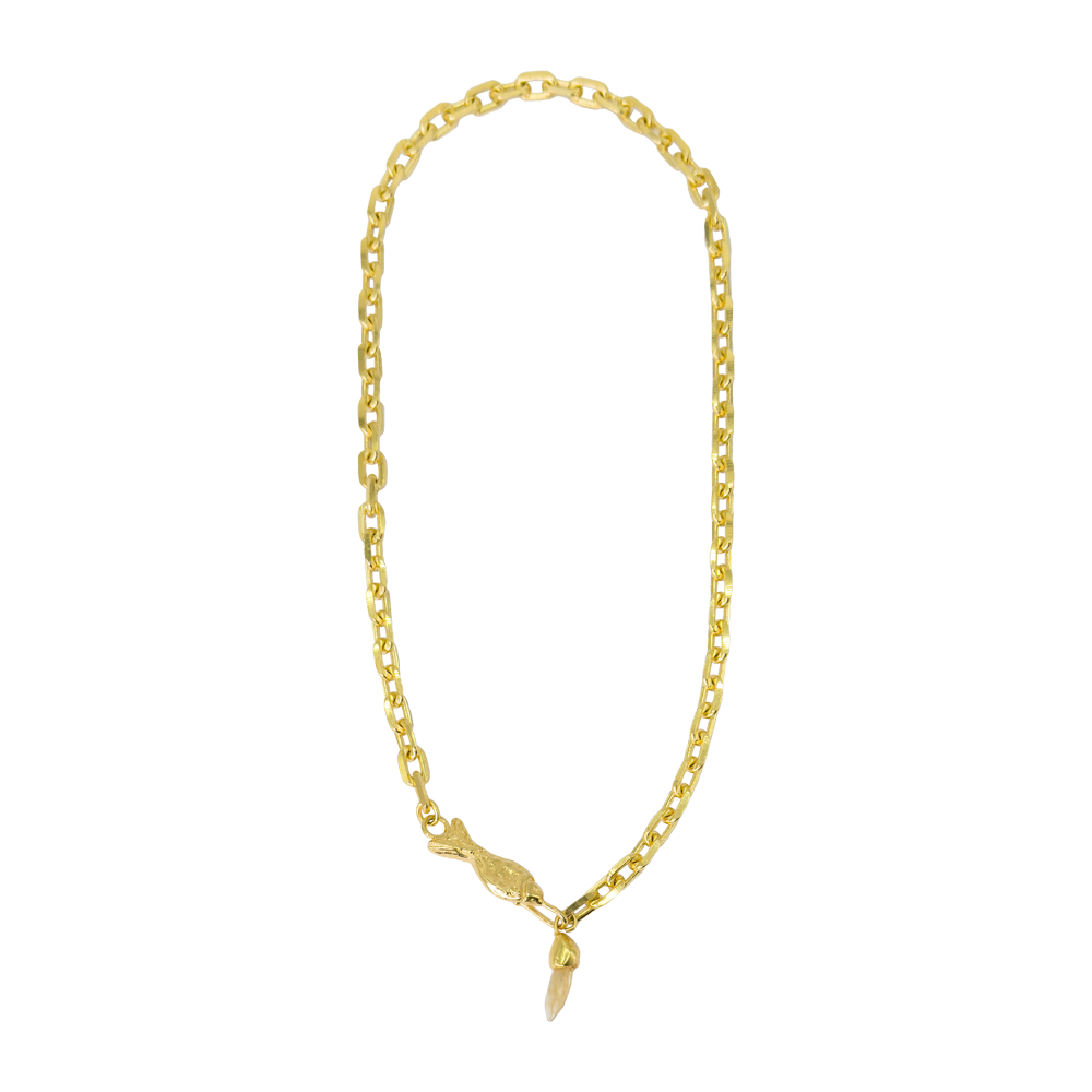 Colar Chabichou faz parte da coleção Fractal. Colar de corrente com fecho de pingente de peixe e cristal rutilado. Finalizado com banho de ouro 24k. Comprimento: 42cm.